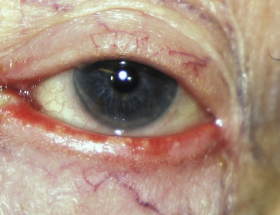 ▪ Multiple chalazia, resulting from retained Meibomian secretions from inflamed orifices